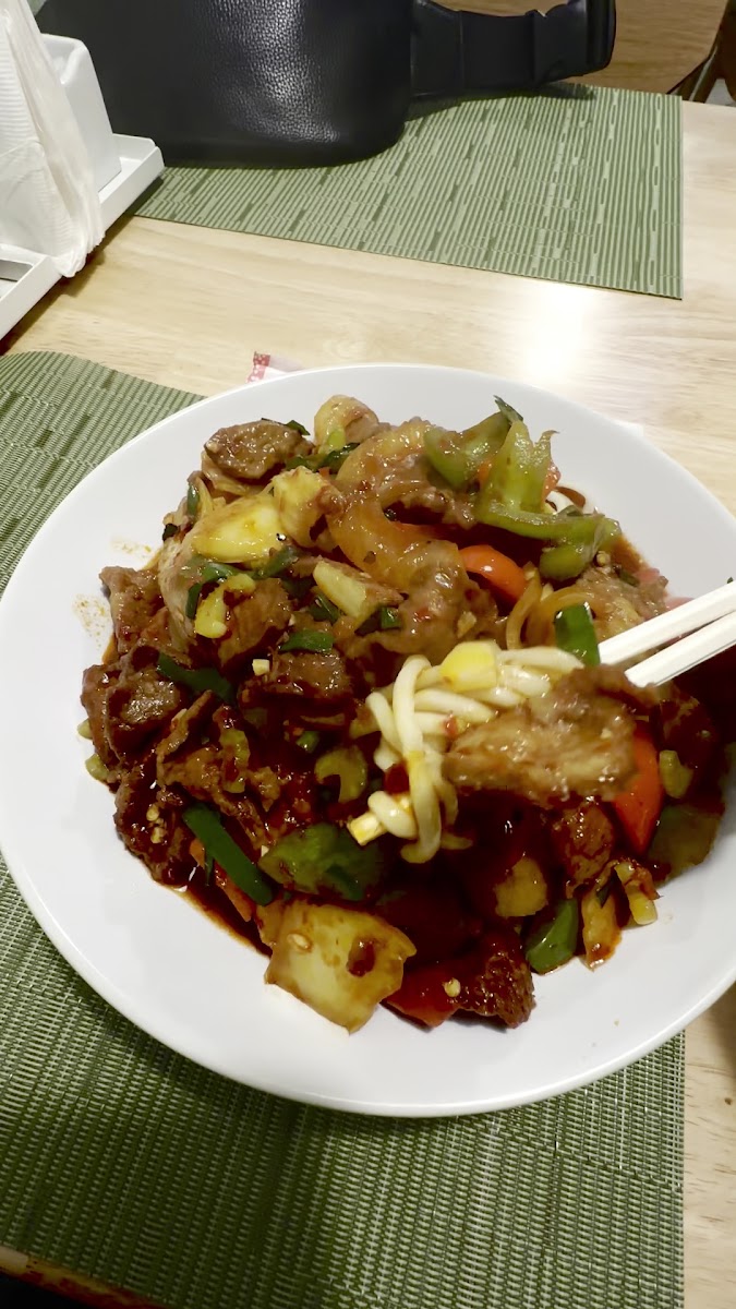 The menu leans heavily into Uyghur comfort food, with laghman noodles as the heart of the operation. Laghman, for anyone unfamiliar, is a Central Asian noodle dish traditionally made by hand and topped with stir-fried vegetables and meat. Food historians often point to the Silk Road as the reason these noodles blend Chinese technique with Central Asian flavors, a detail supported by culinary research shared by organizations like UNESCO’s food heritage programs. At Arzu, this history shows up in every bowl. The noodles have real bite, not the soft kind you forget five minutes later, and the sauces are layered with cumin, chili, garlic, and slow-cooked tomatoes.